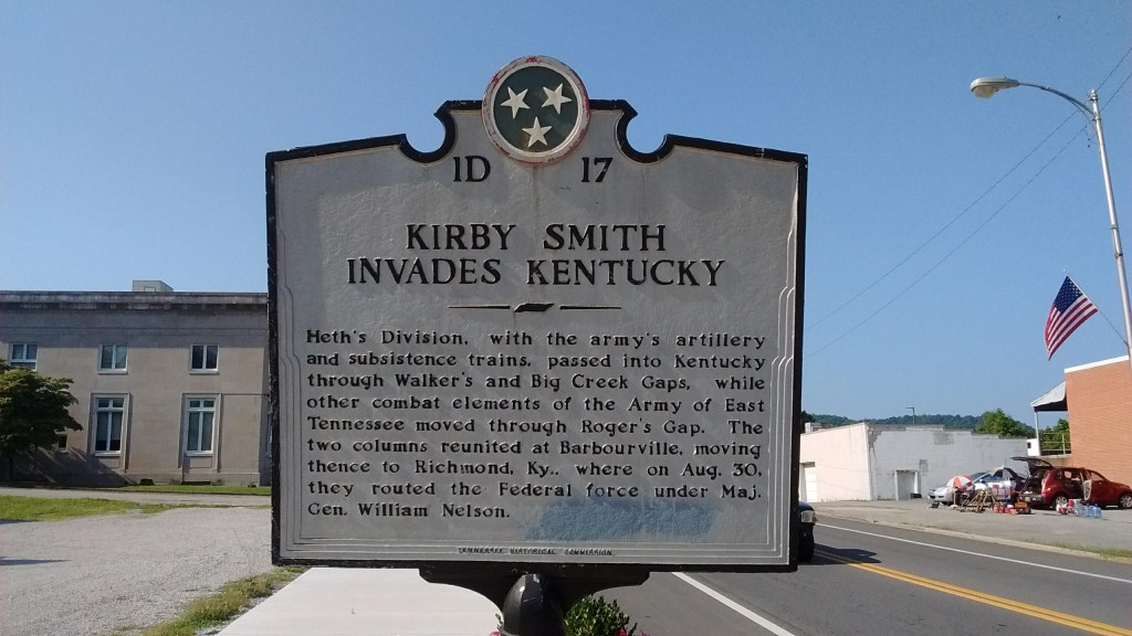 16 AUGUST 1862 Gen. Smith waits for his reinforcements and bypasses Cumberland Gap through Barbourville KY to the west, leaving Stevenson’s Division to watch Morgan’s garrison in the Gap, who Smith believed were too well fortified to capture, but too small a force to challenge him in the field. joepayne.org/battle/main.htm